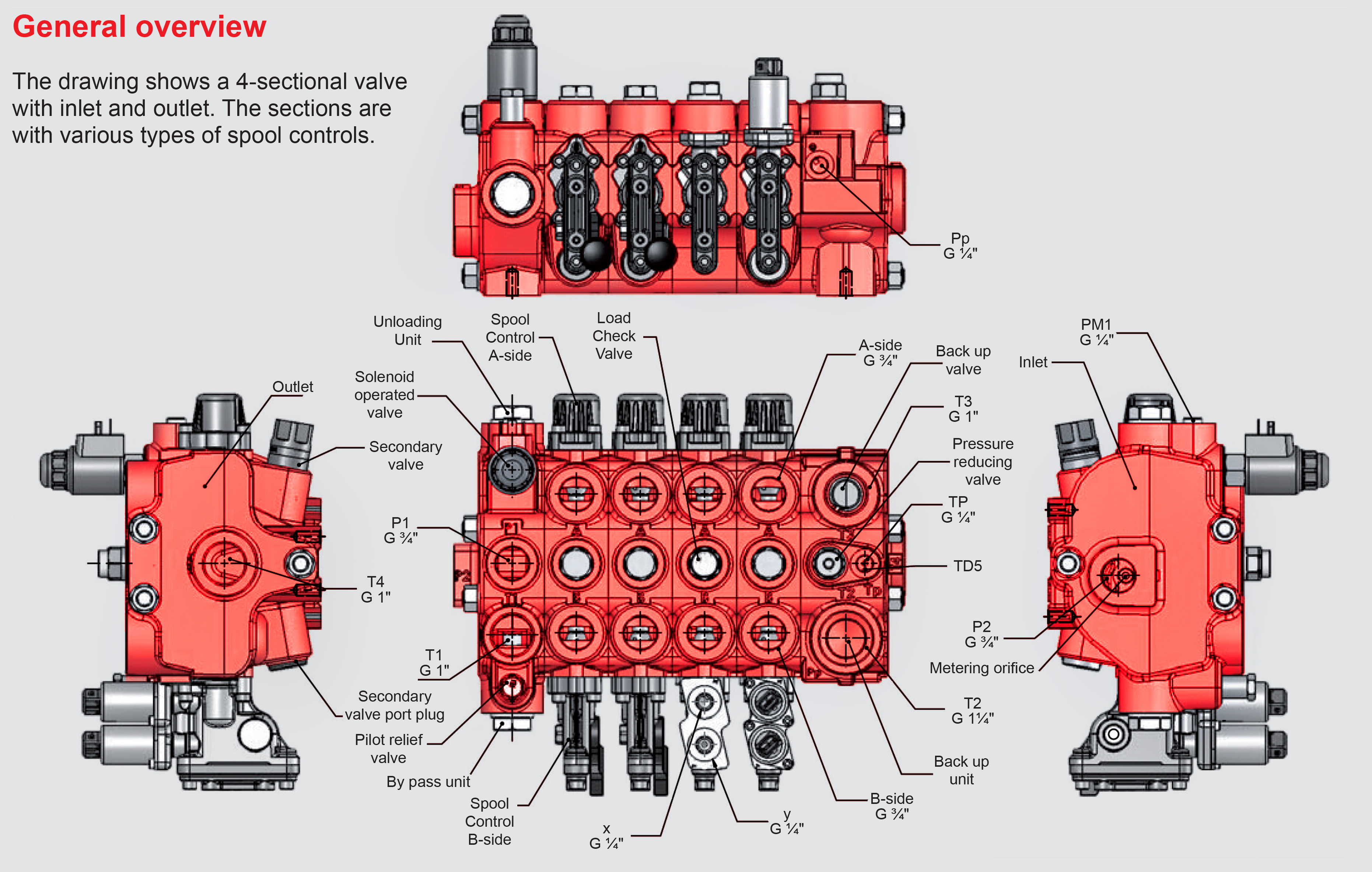 - Sections with secondary valves and float mode (4th position) available.